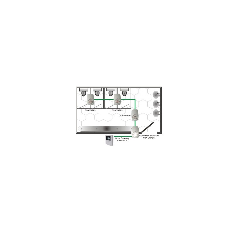 Il CSA-SGD rileva la presenza di fumo di nicotina e invia un segnale di allarme ad altri dispositive. Non emette Nessun segnale acustico, ma fa lampeggiare il suo LED per 5 minuti dopo la rilevazione.